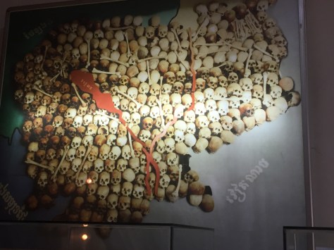 A poster relating to the number of deaths, published after the activity of the Khmer Rouge was revealed, and then withdrawn as too horrific……