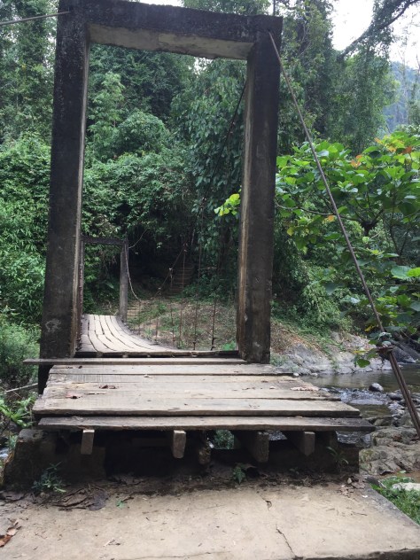 We crossed the river on a very long and wobbly bridge amazingly shared by pedestrians, cyclists and motorcyclists. In the usual way, the bridge swayed and the planks flexed as weight fell on them. I am sure they have been safe for years, but still felt happier when we had reached the other side!