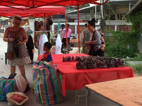 Back on the night market street, young women were setting up their market stalls, babies attached. All happy, albeit shyly, for us to show an interest in their offspring.