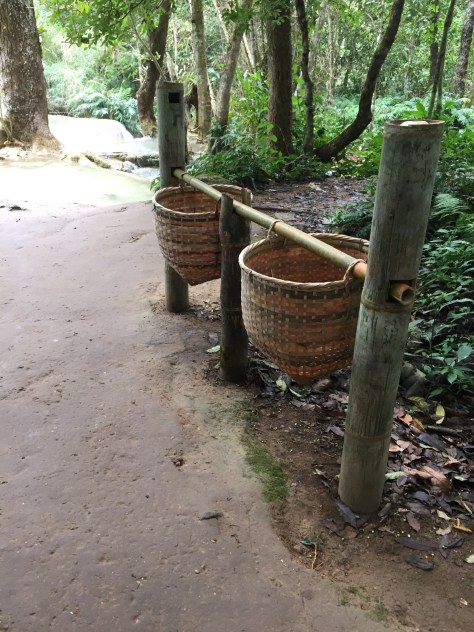 En route to the waterfalls you pass through a bear rescue sanctuary. Apparently there are bears in Laos, poached for their saliva. This often leaves cubs without their mother and the rescue centre had a number of bears who seemed reasonably happy in their semi native setting. Most there had been rescued very young and had no experience of life in the wild so hopes of re integrating them into their natural habitat are quite slim which is a shame.