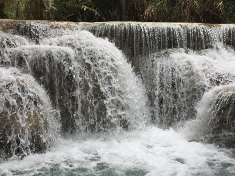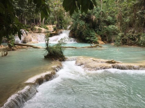 Reluctantly leaving the Museum behind, we took quite a long tuk tuk ride into the country to see the famous Kuang Si waterfalls. These are about 50 minutes outside of town and are approached by the usual avenue of food stalls when you near the site.