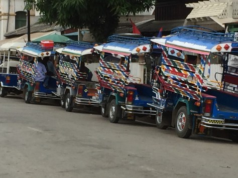 The road of the night market looks very different in the day. It is quite a wide road. Tuk tuk’s sit patiently and colourfully waiting for customers.