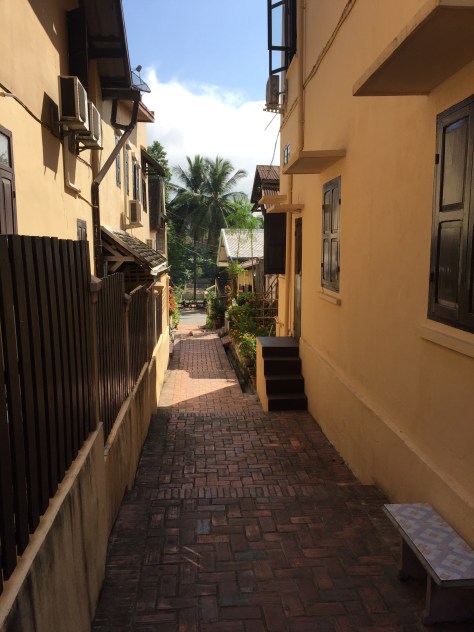 Luang Prebang used to be the royal capital of Laos. Once again it sits at the confluence of two rivers – the much mentioned Mekong and the Nam Khan which runs passed our hotel. The city was pronounced a World Heritage location in 1995 because of its beautifully preserved colonial buildings. It had a monarchy until this was dissolved in 1975, the last King and Queen being held prisoner in a cave in the north east of the country until they died in the early 1980’s. Like Cambodia it has had to pay homage to both Vietnam and Siam and was later under the authority of the French whose legacy, in addition to the old buildings, would seem to be wonderful French bread!!