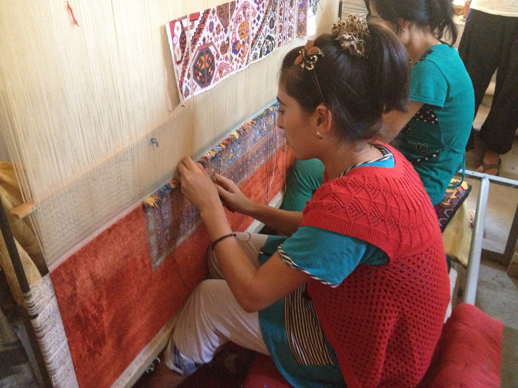 of one of the artisan shops that line the pristine walkway between the Registan and the mosque. We had wonderful Greek salads and shredded carrot with a yummy but mysterious dressing and cold drinks. Accompanied by a yoghurt dip and the local bread, it is our favourite lunch.