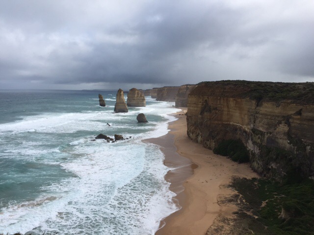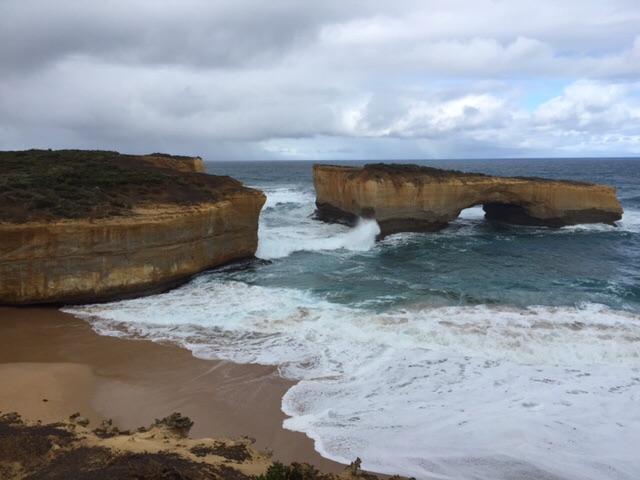 mystreiously we then left the coast and had a very meandering drive in land. Thank goodness for an automatic car as we twisted and turned around hillsides. I thought it reminiscent of the Dordogne lush green vegetation and winding roads And then at Apollo Bay we came out onto the coast again.. The sun came out and it was glorious. We drove along the road next to the sea as the waves crashed onto the shore the terrain was still very much up and down and twisting and turning but now we had the sea at our shoulder all the time – the true Ocean Road.