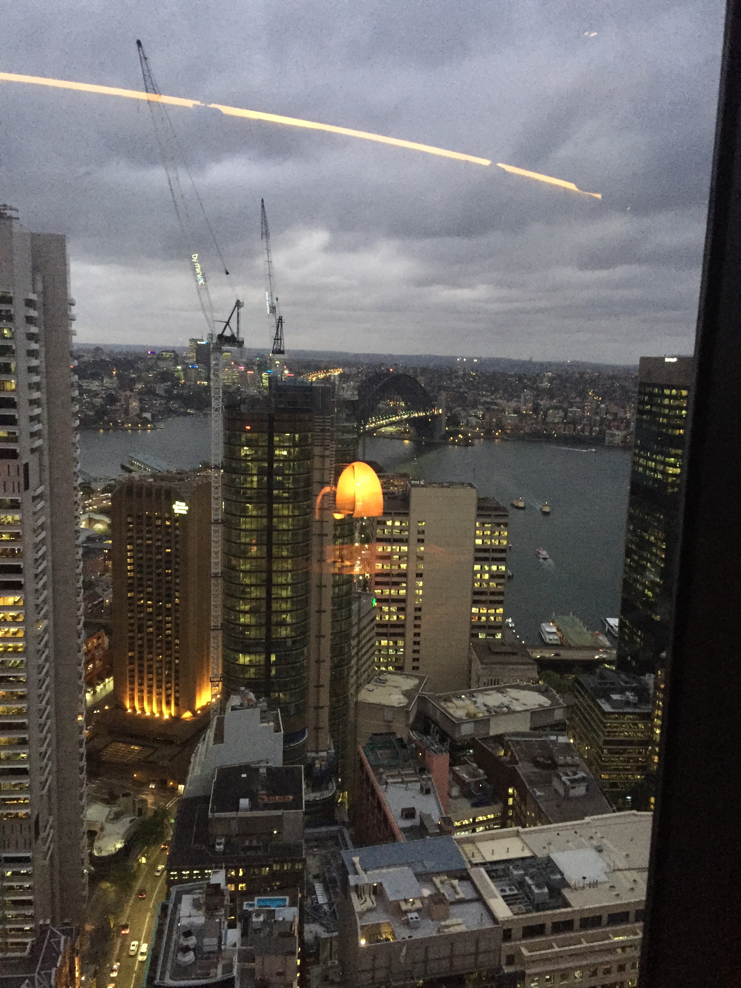 Justine had very kindly invited me to have a drink with her before catching the bus home. This all went to plan and she took me to a revolving bar on the top of a building near the infamous bridge. What fun as Justine and I had ‘previous’ on revolving buildings (take two roving HR people in a revolving restaurant in Hong Kong many years ago – unable to find their table on the return trip from the literally ‘revolving’ buffet……add chickens feet and lost handbags and you have the scene!). We laughed as we reminded each other of the event and sipped our bubbles as Sydney City slowly moved around us. Then there was the bridge – looming before us It was a magical moment with a dear friend.