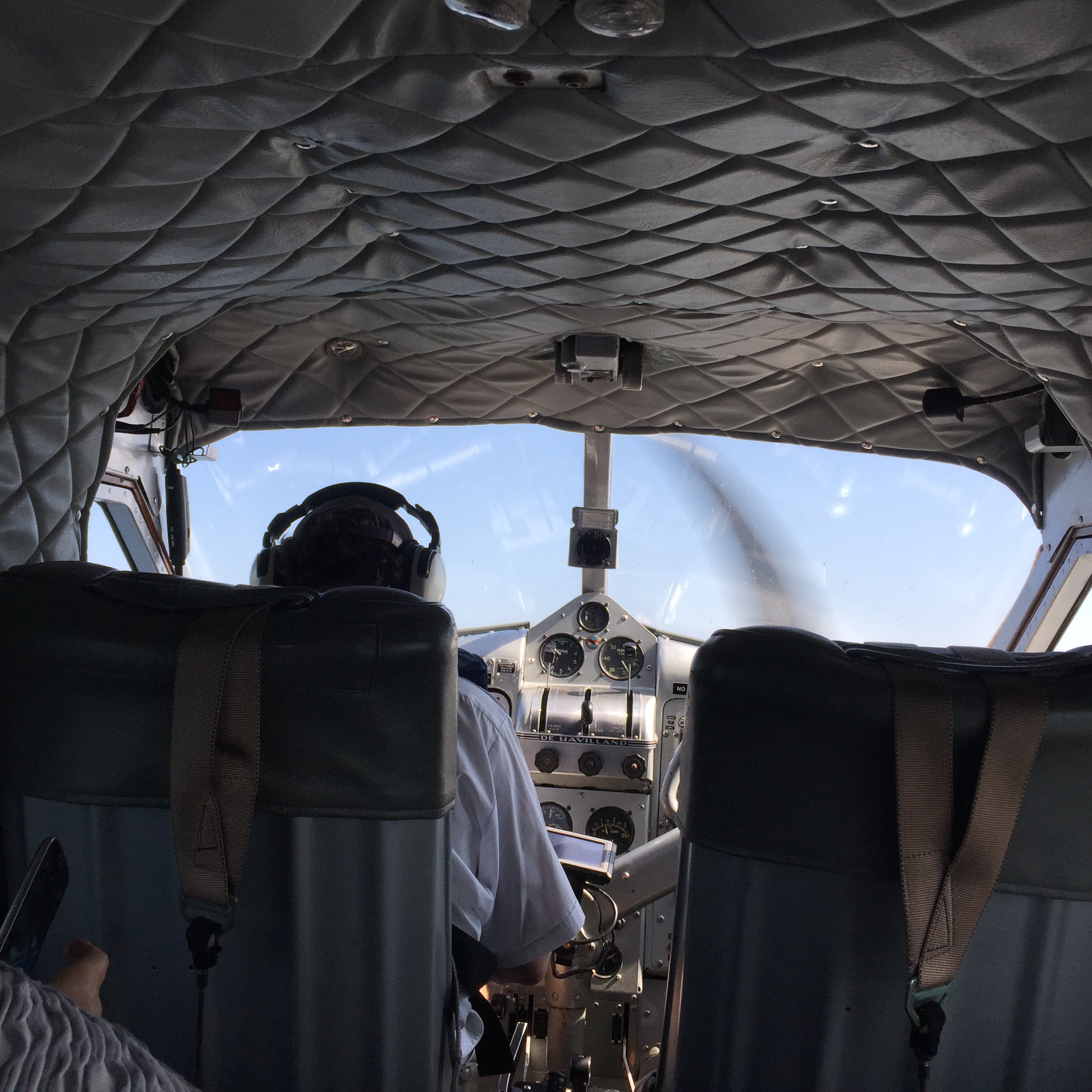 The seaplane operation is run by Steve and his wife (I think), a lovely couple. He is a little craggy chap who looks in the cockpit as though he is part of the aircraft! As the ‘plane engine ground to a halt, Mrs Steve very competently moved fuel cans into position and within a very short space of time we were being given our life jackets to tie around our waist (was this to be the only thing between me and ocean swimming I thought…… Once again it looked a little small!) and we were being ushered on board. The interior was snug to say the least! There were four of us in wat felt like an oversized pram interior ( it might have been the quitting!). Two behind two with the pilot in front.