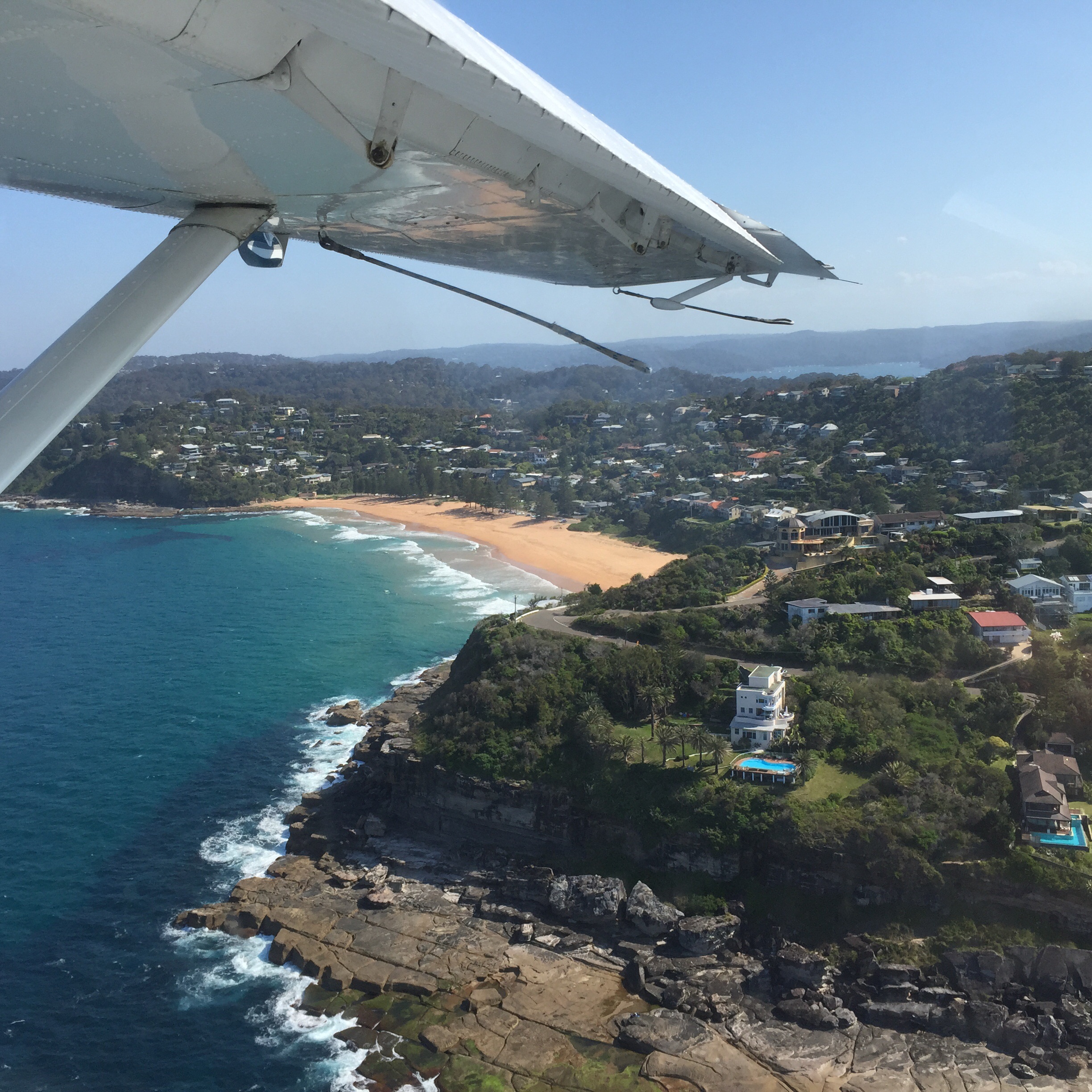 The bus to Palm Beach went from the bottom of the hill at Collaroy, so we set off in the sunshine aiming to arrive at Palm Beach at about 12.45. Our flight was due to take place at 2.00 and we had decided to lunch at the Home and Away cafe prior to take off. All went to plan until we missed the bus stop. No excuse, Tony’s instructions had been quite clear – we were so busy looking for the lighthouse we quite forgot the golf club! Luckily it was only one stop and it was no real hardship to walk along the sand back to the seaplane jetty and the cafe