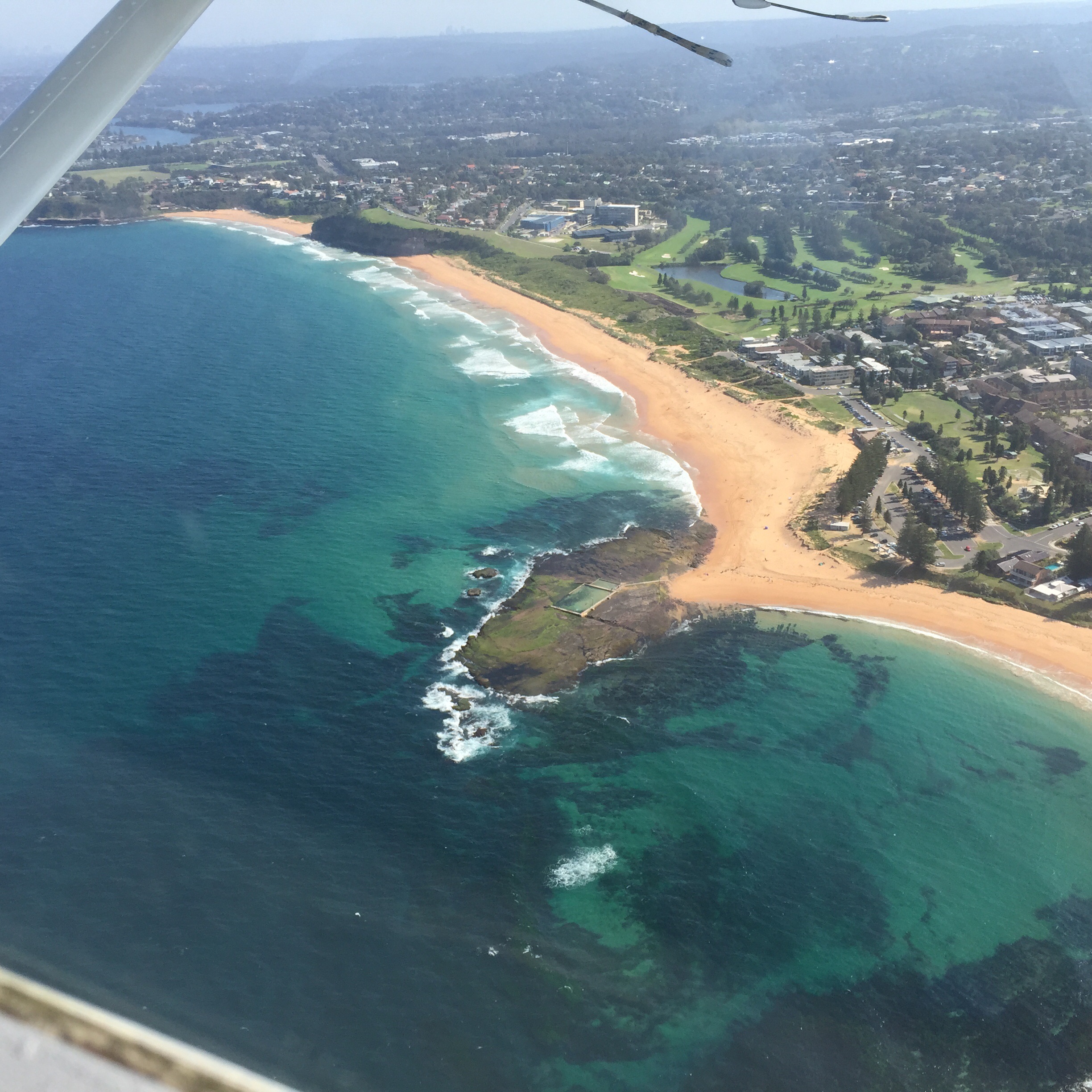On the return journey we dropped lower and saw more clearly all the boats moored in the inlets and more beaches came into view . What was nice was the fact that we flew over a number of the coastal walks we had made over to Manly, at Curl Curl (where Wendy and Sarah live) and of course Collaroy.