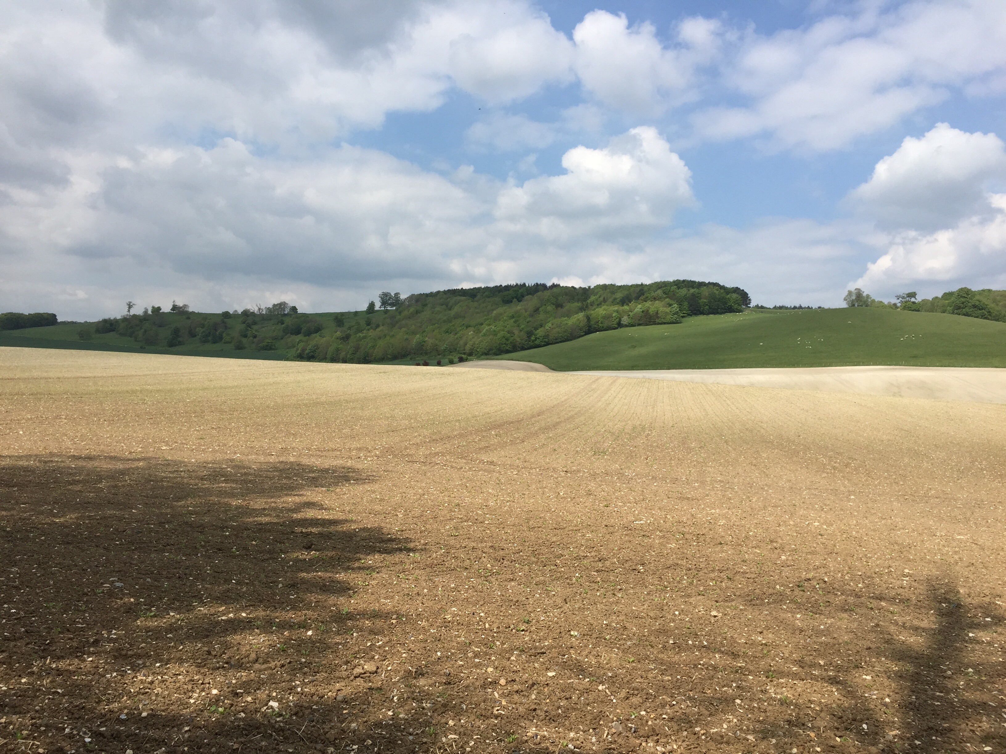 We then came to the Eastwell Estate – very large and immaculate arable fields – with notices clearly stating ‘No Entry to the Public’. Quite clear. This caused sharp turns left and right to avoid offending the obvious powers that be. Here we realised that in fact the downs were now in the distance to our left.