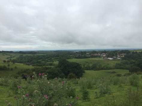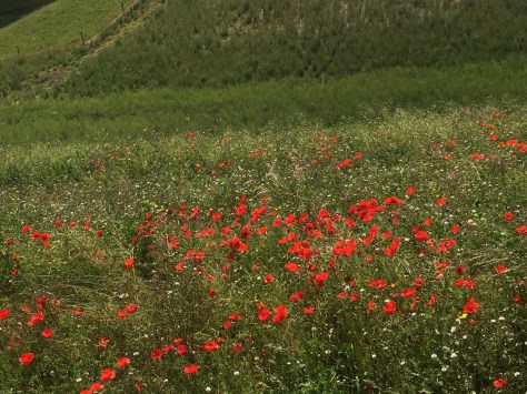 However, we kept going. Our route took us around the other side of the hill and we descended into trees. We then walked along the valley under trees. Eventually we came out onto the road. It was such a relief but we went ahead on a field edge and more poppies!