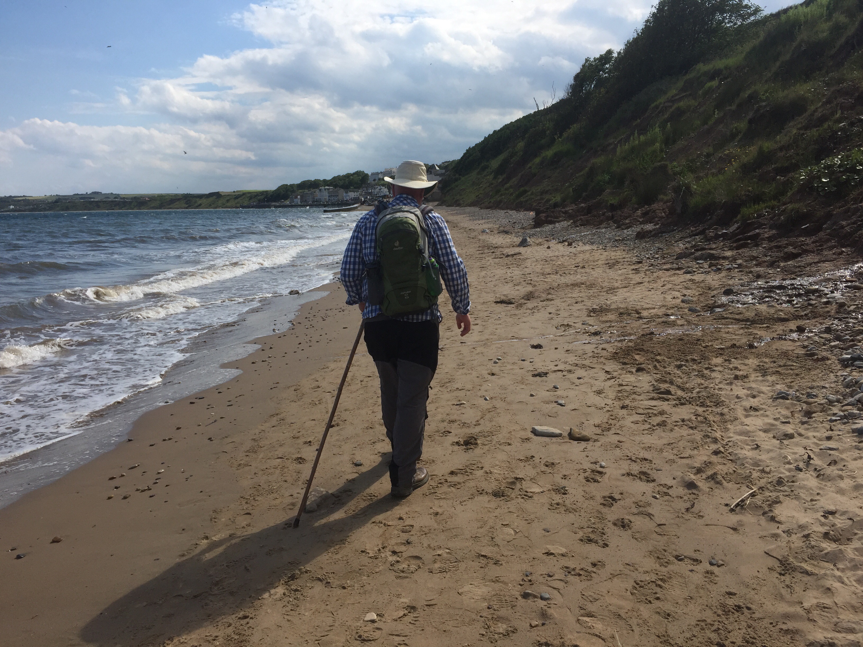 We took a a left turn just short of the end of the village and then set off over a couple of fields and eventually came out by the playing fields of one of the Filey schools. We were nearly there! Emerging on to the road we got caught up with the young people coming out of school (at 2.30?!). It was as though we had been caught in a movement of a pack of wildebeasts! There were large packs of long legged young men and women travelling at their own pace and occasionally crashing together in a flurry and nudging of school bags (what happened to the satchel?), shoulders and legs……. We felt very old and out of step!