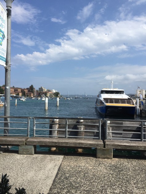 We arrived in Sydney and took the metro to the central quay to take the ferry to Manly where we were to meet up with the girls again. The ferry across the harbour was busy and the sun continued to shine although there was quite a breeze which sent yachts scudding across the water around us. We decided to lunch on Manly harbour side and consumed Moreton Bay bugs in a delicious sauce while overlooking the water.