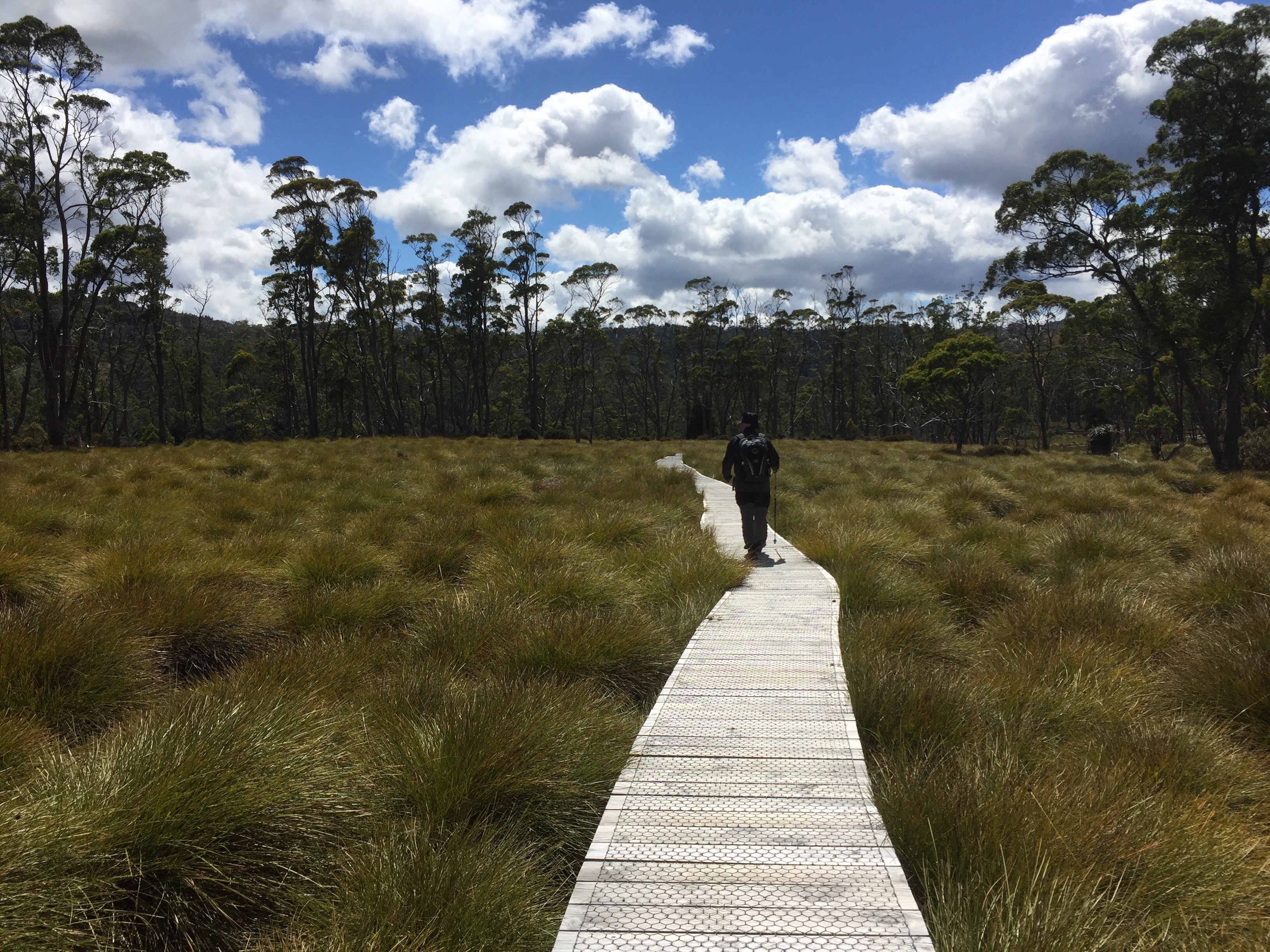 Now we could see the ridge of Cradle mountain on the horizon and we knew we were close to the boardwalk area we had walked yesterday.