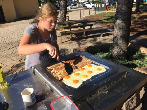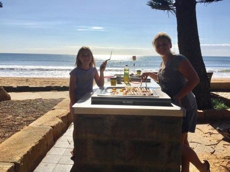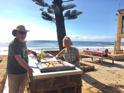 We are really on the last lap now – we leave for home on the 12th. It was a beautiful morning and we were encouraged out of bed by the news that it was to be a barbecue breakfast on the beach……. within no time at all we were all in the car and heading down the hill to the Colleroy Beach. It was already busy with walkers, swimmers and birthday party preparers!