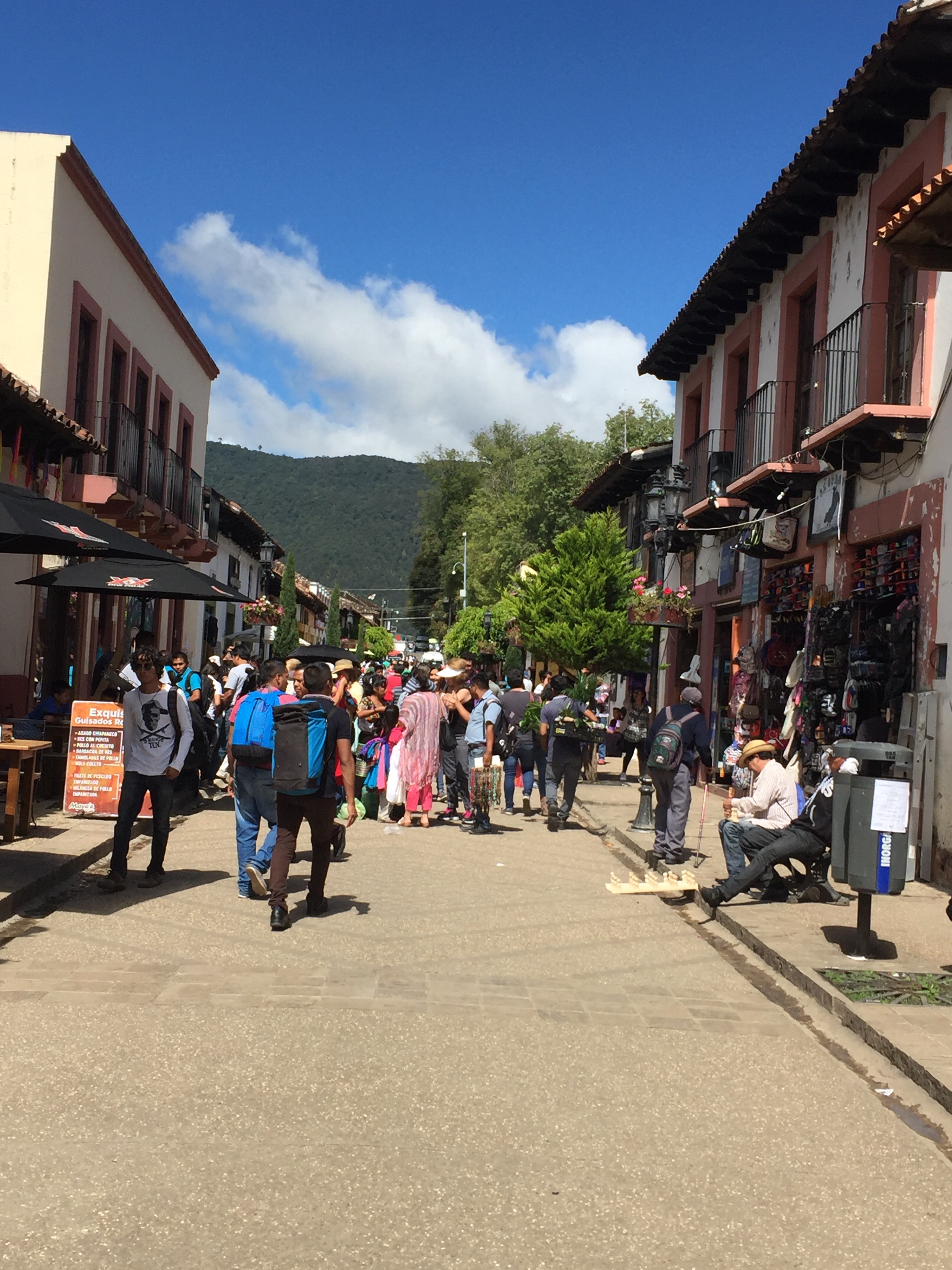 We walked back through an avenue of trinket sellers who had not been there when we arrived but appeared as if by magic to form a guard of honour on our return. The bead work was colourful and there were wonderful feathered dream catchers. We maintained a high resistance, mainly due to our more or less diminished pesos and the fact that tomorrow we remove to Guatemala.