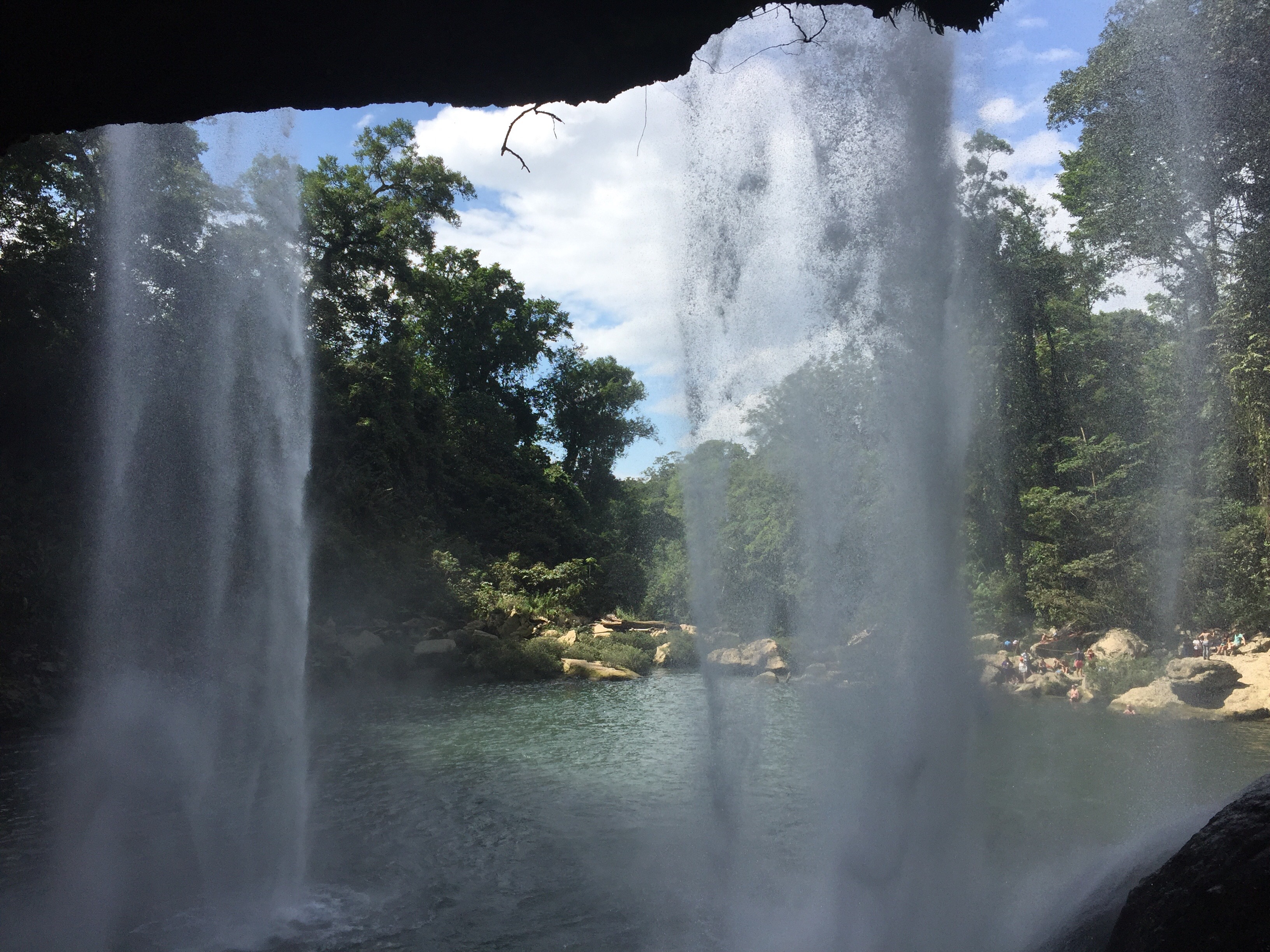 The route through twisted and turned. Bats flew over our heads. Our torches exposed spiders on the walls. It was as sinister as I guess it was meant to be. Eventually we emerged into daylight again. It was a place of dark shadows. The green of the jungle was all around us. There is a lot more of the City to be unearthed. There are a lot of earth and tree covered mounds.