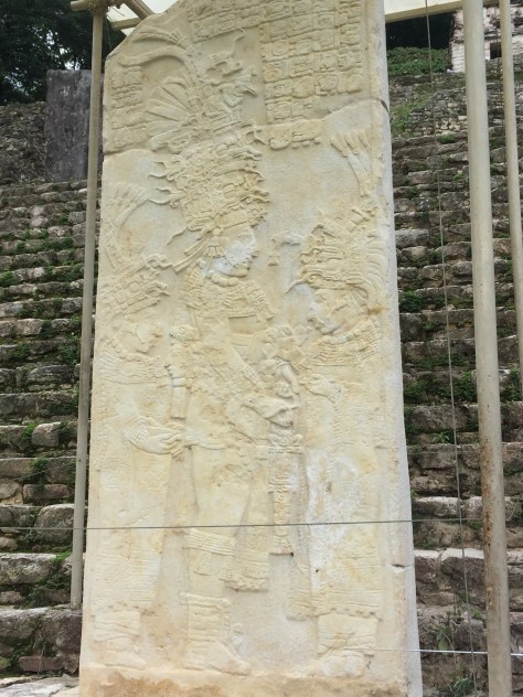 The rulers here had amazing names. Shield Jaguar I, Bird Jaguar IV and Shield Jaguar II. There was a ball court – we are back to human sacrifice here – and wonderfully carved stelae, but the glory of this site is the huge acropolis.