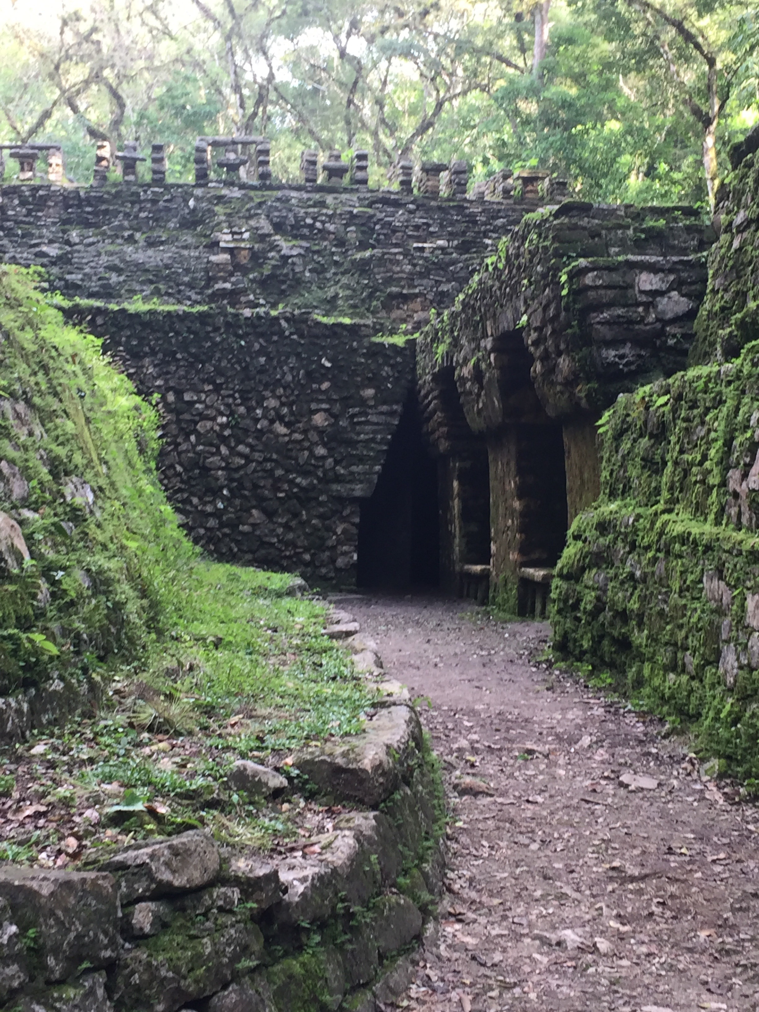 We arrived mid afternoon and the light was just perfect. To get to the site you walk up the path from the river, as the Mayan’s must have done. Eventually a clearing is reached and a large Mayan building blocks the path. This was viewed as representing the underworld and its dark passages had to be negotiated to reach the city’s main plaza.