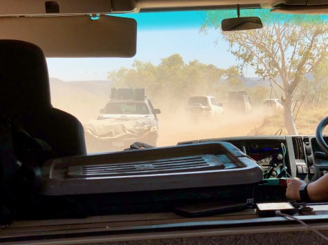 As it turned out, we waited there about 3 hours by which time we had been joined behind the barrier by a number of independent tourists and another Overland trip truck. (This was the group who should have been our fellow travellers. They were more of our age – but so glad we weren’t part of their party!) At about 10.00am the Ranger drove us out in convoy.