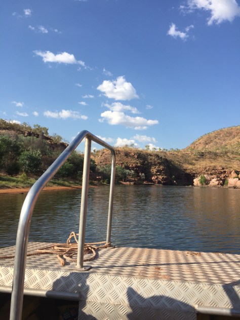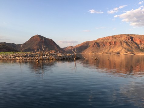 We were now back on track but somewhat late for the sunset cruise on Lake Argyle due to start at 3.15. It was definitely ‘at risk’. The bone shaking track continued for about another 45 minutes before we were back onto a metalled road. We had got in and out of the Bungle Bungles. We were effectively retracing our steps back as far as the Doon Doon road station. From there we headed for Lake Argyle.