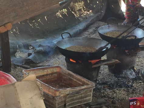 Further along the road, we stopped by the roadside where a family were creating popping rice using a real Heath Robinson device of an old generator attached to a hammer to crush the rice. There were a lot of processes before it emerged husk free and popping!