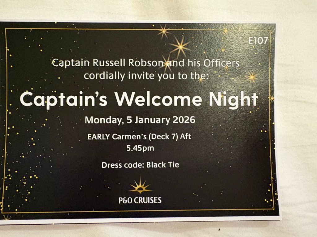 Choosing what you want to attend, remembering what time you want to attend it and where it is is likely to be is going to be a daily preoccupation methinks. The day also brought us an invitation to the Captain’s Welcome Party on Monday, so another new experience to come – ‘evening dress’ specified which will, no doubt, bring its own diversions!