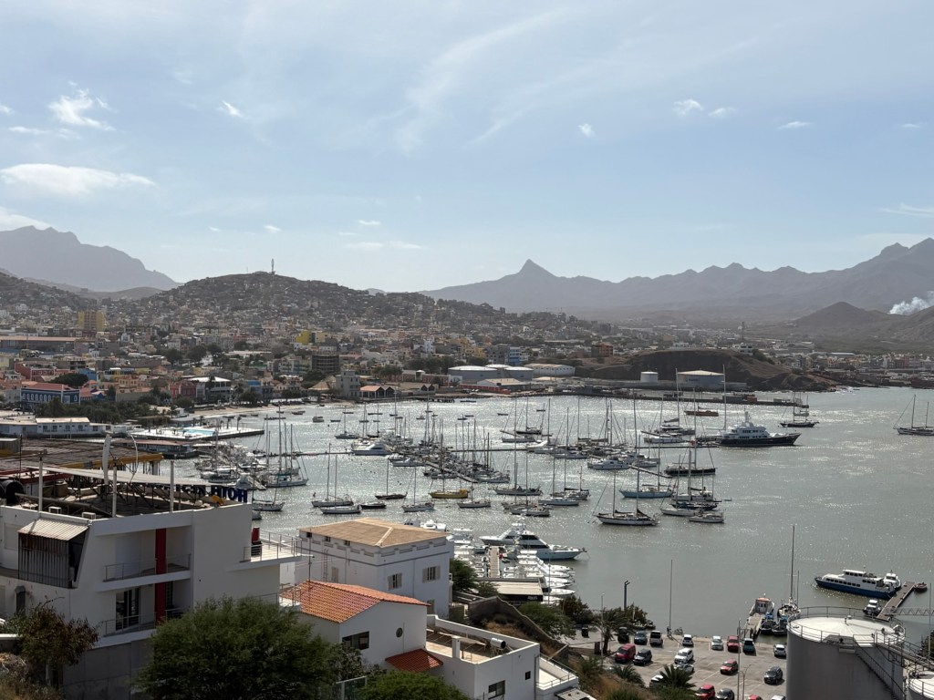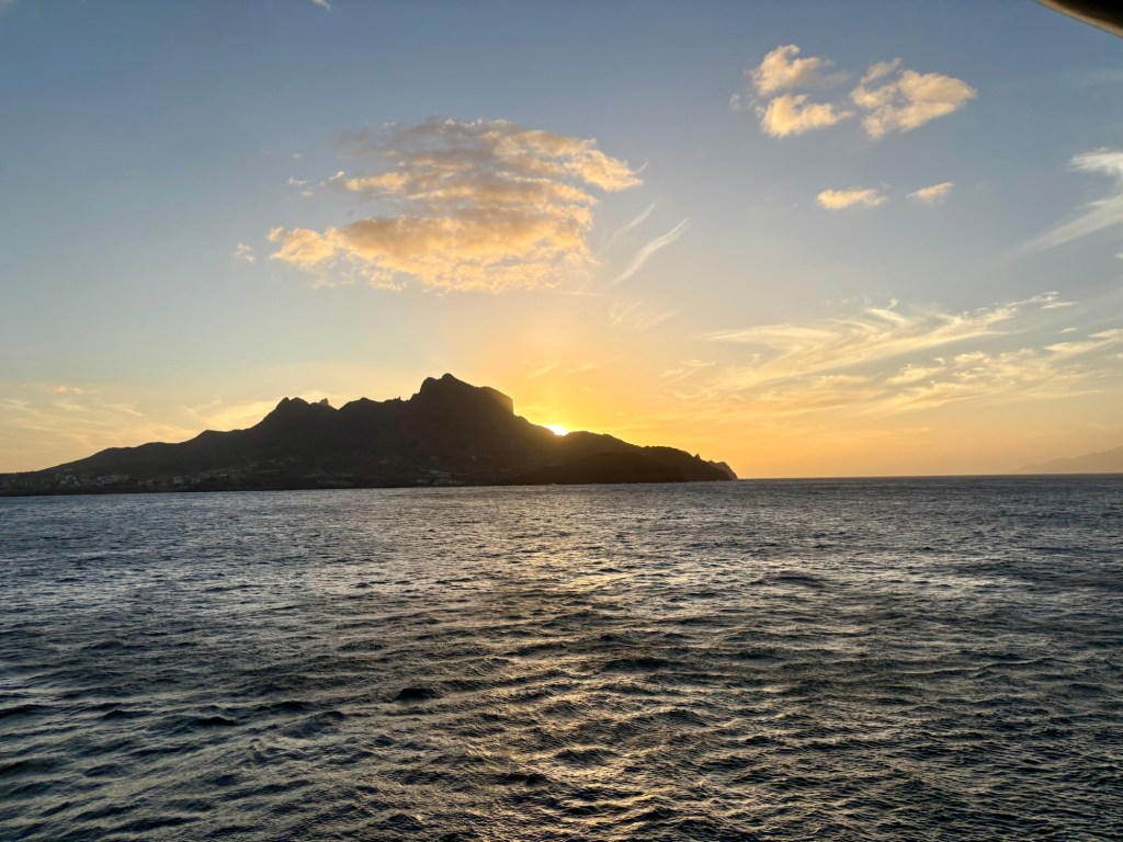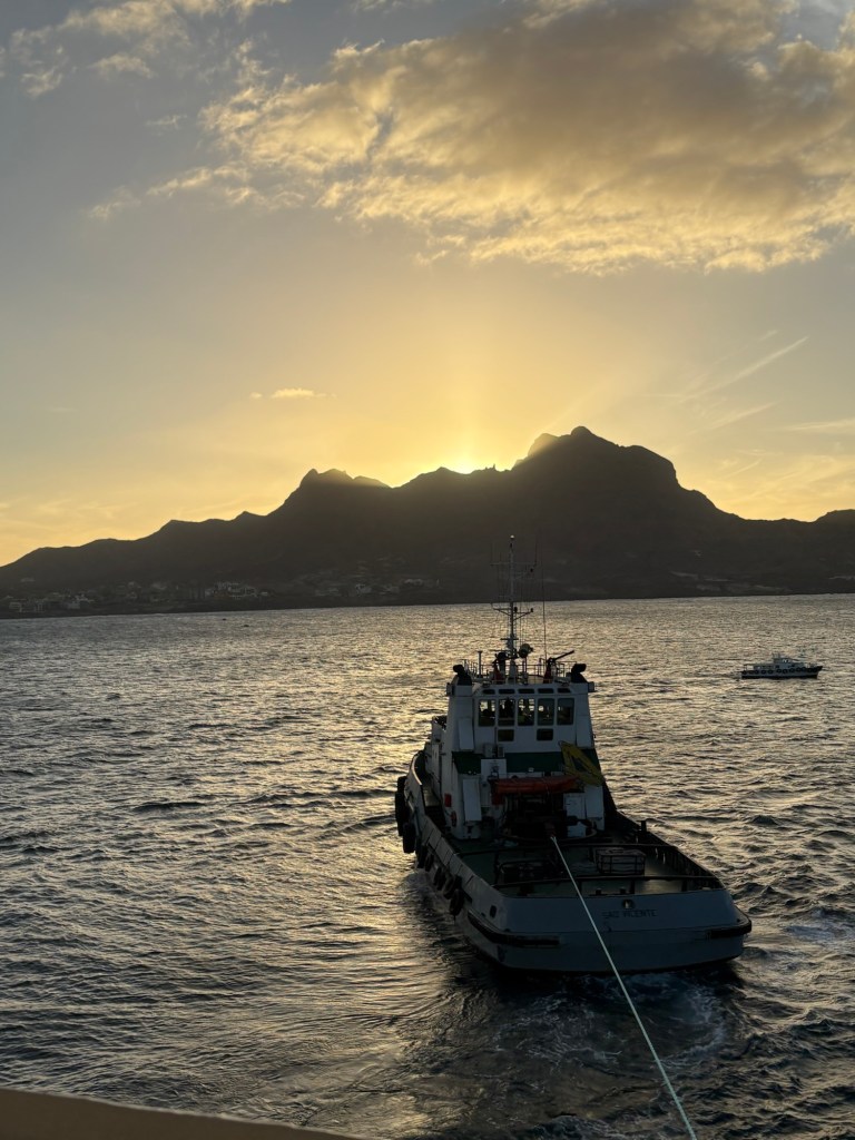 I woke just before 7 a.m. to find us in the harbour at Cape Verde or Cabo Verde as the local people call it. We are to the West of Senegal. The island where we had docked is called St Vincent and is one of 10 islands that make up Cape Verde. This is the main harbour and is almost encircled by volcanic hills that look like broken teeth on the horizon.