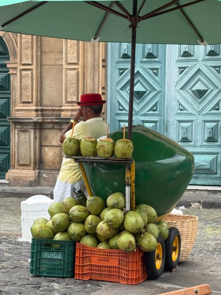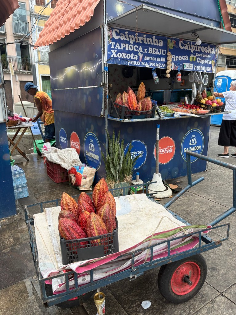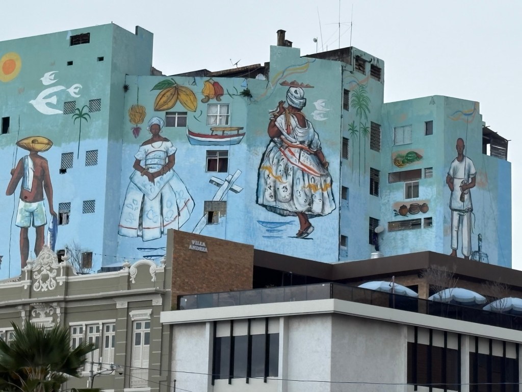 The city of Salvador is the capital of the Brazilian state of Bahia and was the first colonial capital of Brazil. It is the third most populous Brazilian city after São Paulo and Rio de Janeiro. The old part of town is perched on the top of a steep cliff and a municipal lift (Escalador Lacerda Ed) carries you up there. First we visited the market which was just opening up in the large purpose built building on the quay side, I guess the market would originally have sold fish and local food, but on a Sunday morning in 2026 its wares were more clothing and local tourist buys than local produce.