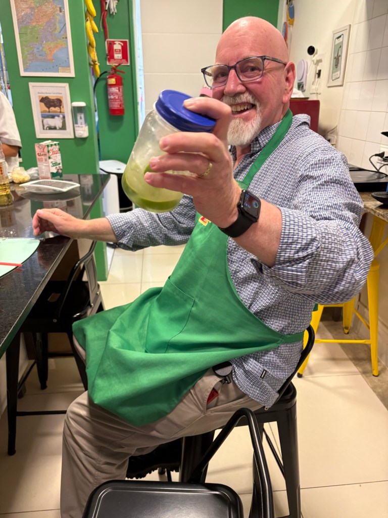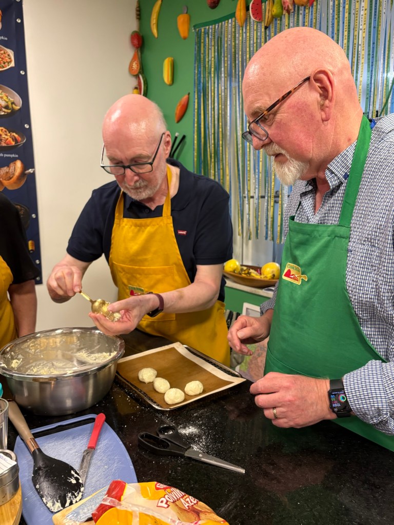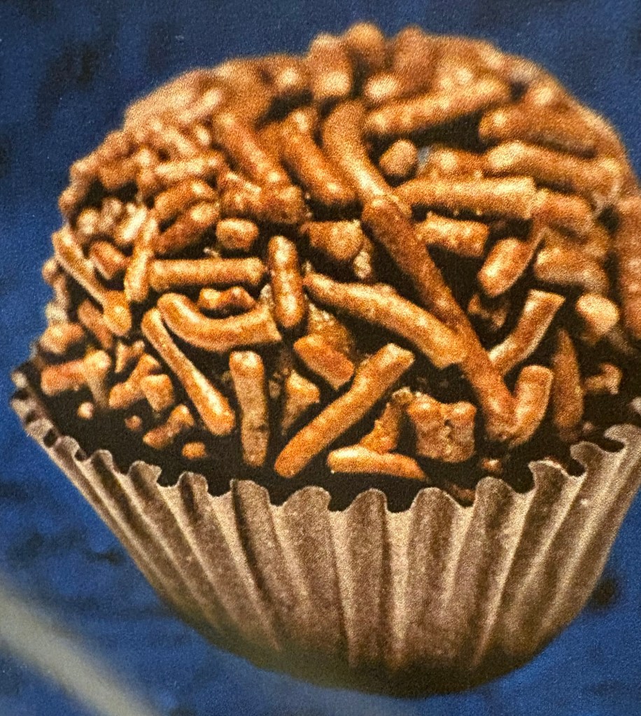 Keith then took on the making of the chocolate pudding called Brigadeiro. This is made from condensed milk, milk cream another type of yucca flour and chocolate, This is cooked together until it forms a thick, dark chocolate sauce which is then left to cool for an hour and then you add either chocolate sprinkles or dried coconut sprinkles. (A chocolate lover’s delight Ed)
