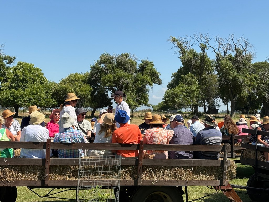 The trip took us through fields of crops and you could see for miles – there are very few hills in Uruguay. La Rebida covers 3,650 acres. There were lapwings and hawks flying up and around us and some local birds we could not recognise. It was nice to see so many butterflies too. They stressed that no herbicides were used on the farm. There were also interesting trees, including eucalyptus, pines, and oaks. Odd to see oaks in the same field as palm trees!