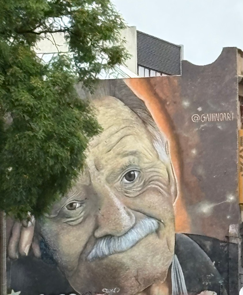 We visited again the parliament building which we saw yesterday but today a wall painting was drawn to our attention of a famous Uruguayan novelist, Mario Benedetti. He looked fun!