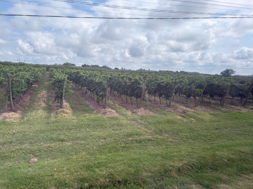We then left town to head to the vineyard or ‘winery’ as it is known here. Our route took us past an area of town we hadn’t seen before where the poorer people live. There are 50/60,000 families living in or around Montevideo below the poverty line. The families are often large and have 6 – 8 children. Children have to go to school to enable mothers to collect child allowance for them. Many of these people earn money by recycling refuse. Unemployment generally is a an issue for younger people in the City. The long carnival they have in Montevideo provides employment for some.