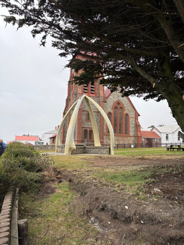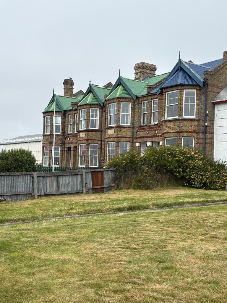 We visited various notable sights. The housing stock is mainly made of wood although there are some made in stone. There is a wonderful row of Victorian houses…but because slate cannot be sent all the way to the Falklands all roofs are made of what they call wriggly tin.