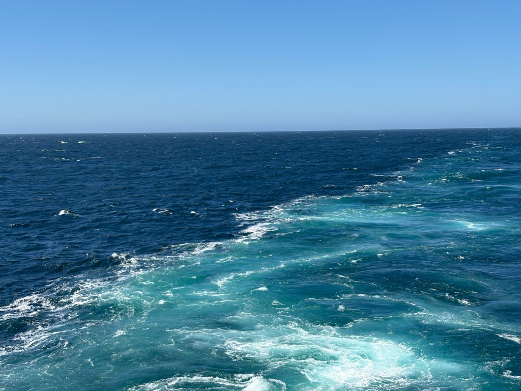 I could feel the ship rolling as I woke up this morning. It was before dawn and still dark but the white tips to the waves could be seen through the window of our cabin. We were already walking when the sun came up. It was going to be a beautiful sea day …