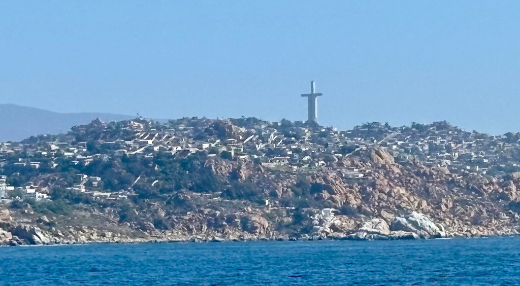 As we sailed out we had a wonderful view of the big Millennium cross up on the hills above Coquimbo. Oh and Inca Terns, something that Keith has been wanting to see – and there they were in the harbour. It has been a great day.
