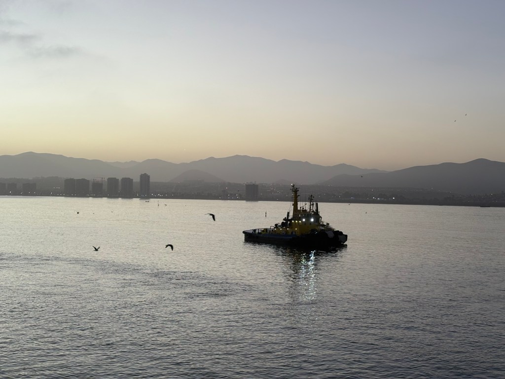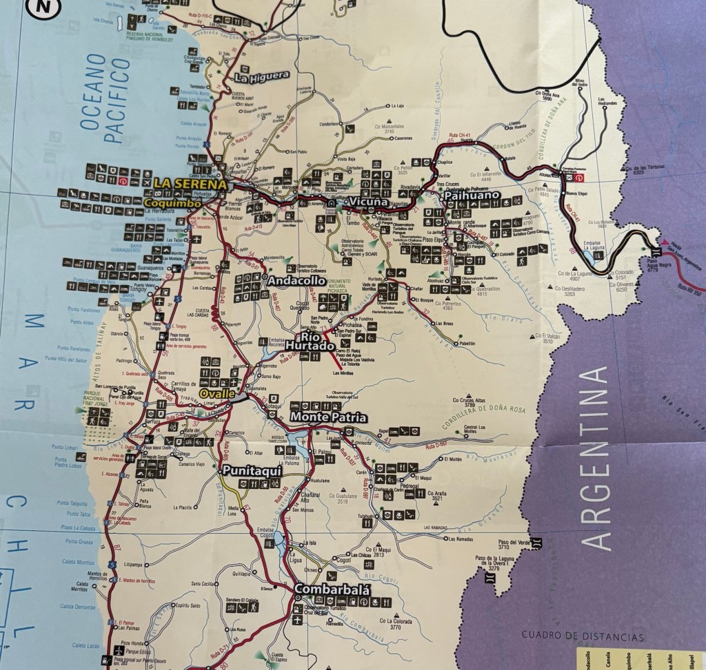 A quick turnaround this morning as we were heading out on Route 41 to Vicuña, the road to Argentina. It was a beautiful morning and we were up before sunrise. Aurora had already docked but all was very tranquil with fishing boats going out and gulls flying out in the bay.