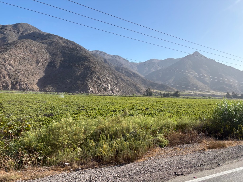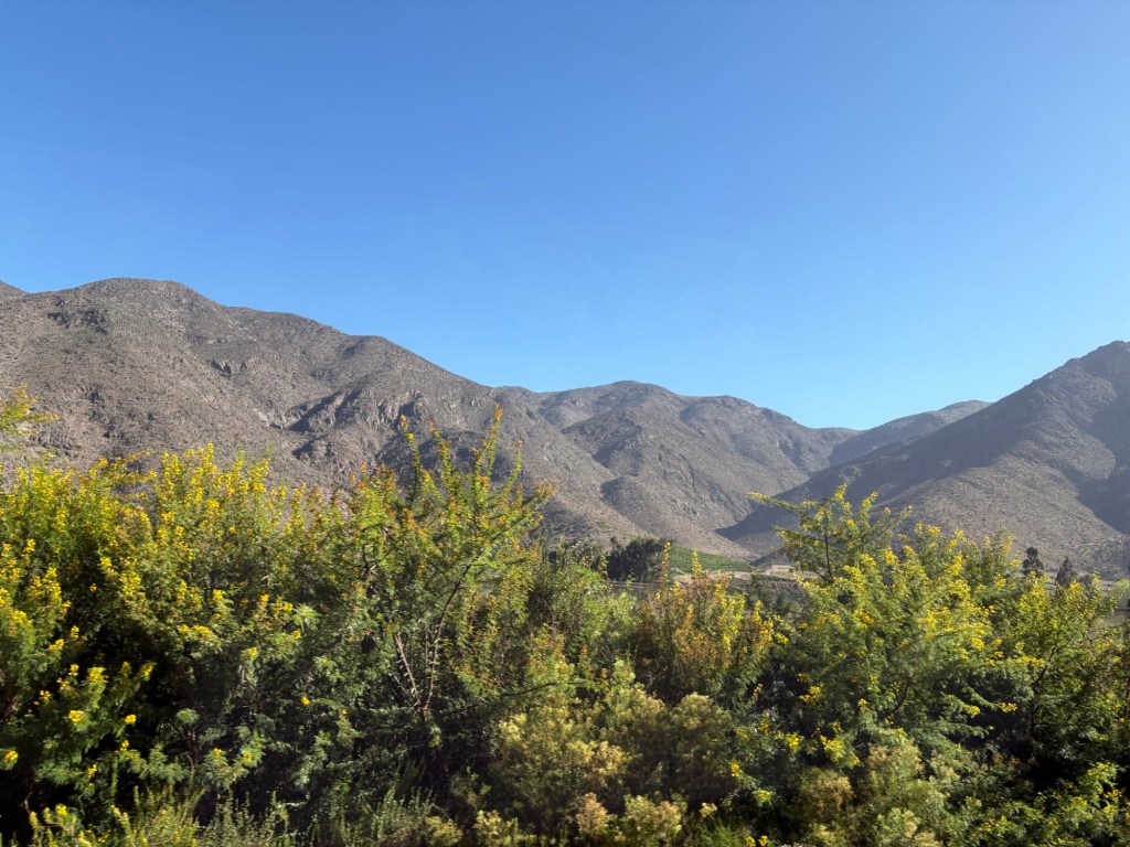 To continue. Once we were on the Route 41 and had left the town behind, the Andes hedged us on both sides of the road. The bus wound through the mountains, effectively following the route of the Elqui River (apparently Elqui means ‘Skinny Boy’). Initially we passed through the fertile fields of the Elqui Valley, with all sorts of crops growing they grow oranges, papaya, olives and all sorts. The occasional farming village came into view. It seemed very Mediterranean!! Gradually more and more vines appeared. These vines are grown for both wine and to make the spirit Pisco.
