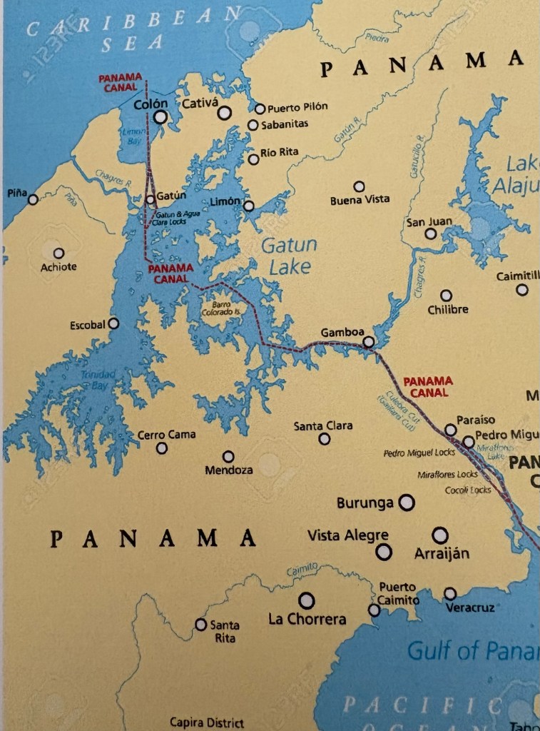 I talked a lot in yesterday’s post about the Panama Canal so will deal more with the mechanics as we experience them today, but I thought a map might be in order. (I should perhaps just say that the Panama Canal is considered one of the wonders of the modern world and we were very mindful that few people ever get to experience it.)