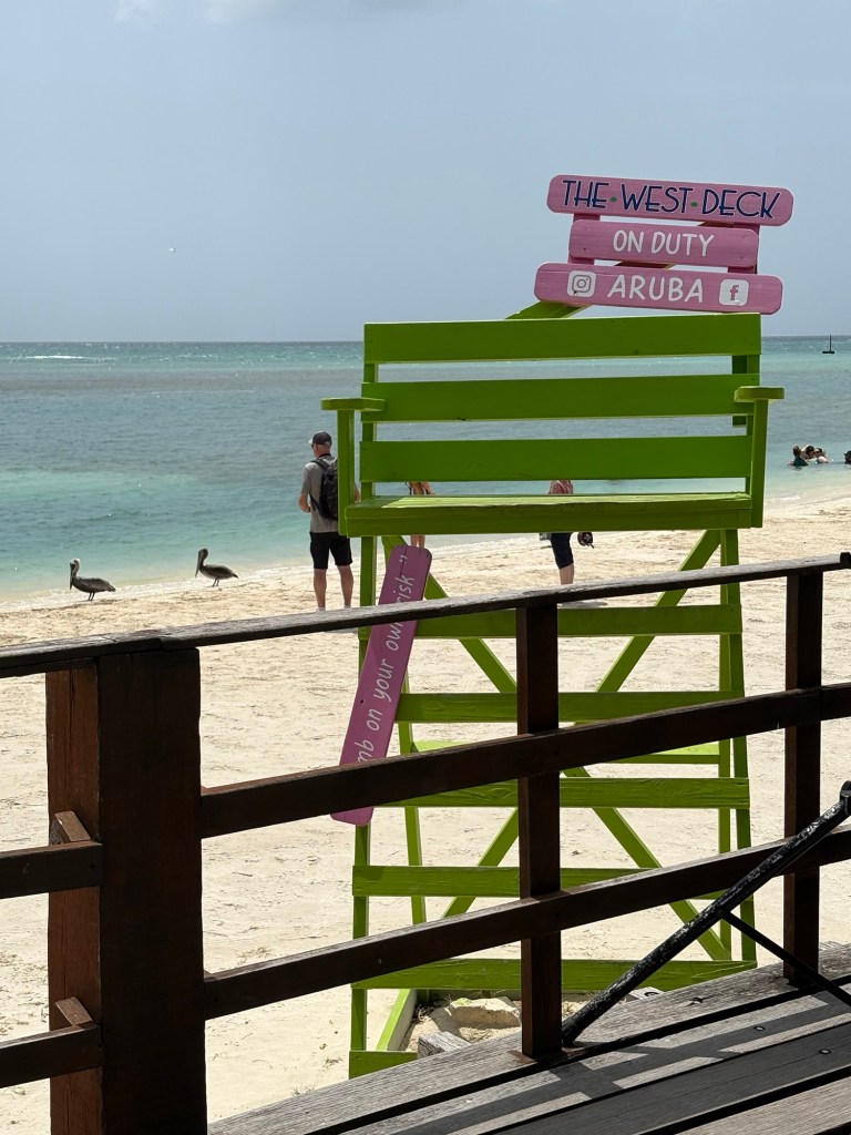 Our meanderings continued but it was not far before we found what we were looking for – The West Deck. A shack on the beach and our first Caribbean food. Before that came my local cocktail – an Aruba Ariba which comprised vodka, white rum, orange juice, pineapple juice, grenadine and dark rum – and it didn’t touch the sides!