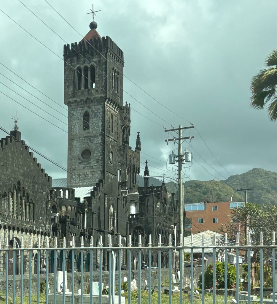 It is certainly not as sophisticated or tourist friendly as Granada although it sees tourism as its main industry these days. It is quite small – 133 square miles in total. It has a live volcano and its beaches are black sand. The Sandals hotel chain has set up a new development in one area and has shipped in white sand, ostensibly because black sand is hotter on the feet, but perhaps because it looks better?!? Just as an aside some of the more expensive accommodation in the complex is $2,000 a night, with one one suite costing reportedly $14,000 per night – it apparently has a glass floor where you can watch the fish. Perhaps snorkelling might be cheaper….