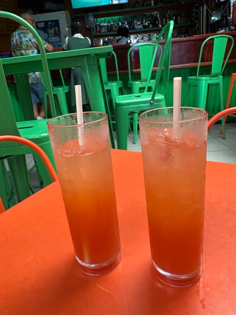 First of course we tried the rum punch which tasted quite harmless – but had a cumulative disastrous effect which I found when I stood up having consumed three of them!?! But I did not realise that until later…..