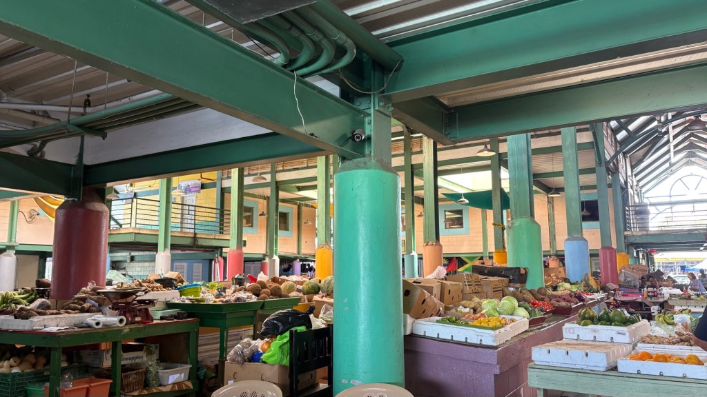 The market was built on the site of the slave burial ground. Many slaves were found dead on arrival in Antigua and they were buried on this site. The fruit and vegetables in the market was excellent – the avocados were huge!!