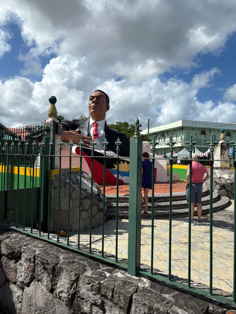 Antigua is the larger island of the twin nations Antigua and Barbuda. It is renowned for its 365 white sand beaches, yachting and the English Harbour a deep water dock. We are docked in St John’s the capital of the island. Another famous landmark is Nelson’s Dockyard which is near the English Harbour and a place called Falmouth on the other side of the island, where the British first settled. Christopher Columbus gave the island its name when he dropped by in 1493. He named it after a the Virgin of the Old Cathedral in Seville.