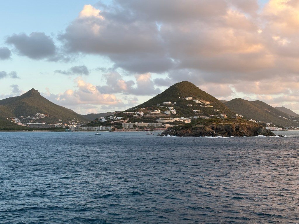 Onward and upward!! We are today in Sint Maarten, an island I had never heard of before our visit! Every day is an education on this trip!! All I know is that it is our last West Indian island – next stop the Azores in the Atlantic Ocean. We are definitely on the way home.