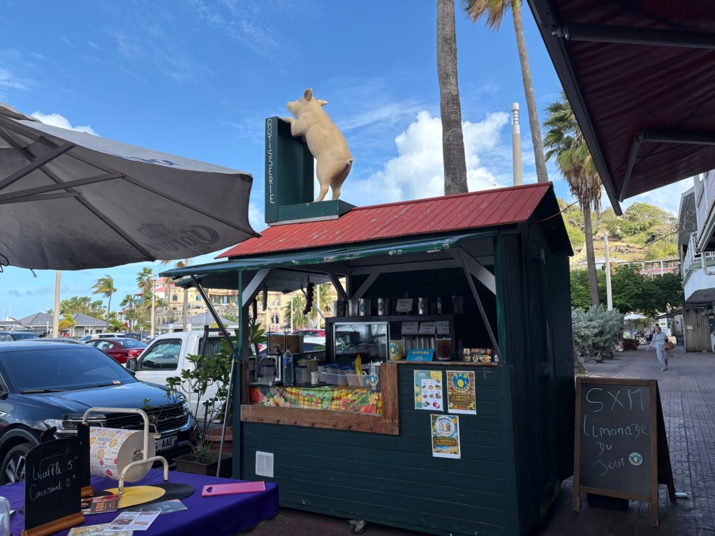 We had booked a tour to visit both sides, first stop was meant to be an hour at Marigot the French capital but, as is usually the case in France, the vast majority of the shops were closed as it was Sunday. So the group opted to stay just half an hour. It was definitely French! We came across a delicatessen that was open and we popped inside – it made us very nostalgic for France!