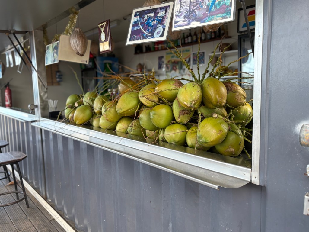 We just had time for a quick drink and Keith opted for a coconut juice from a man who was whittling sugar cane.