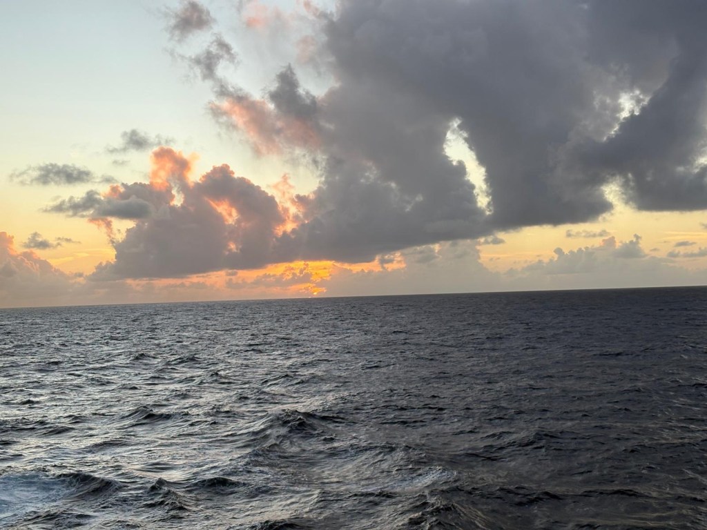 Wednesday 11th March, at sea which is fairly calm 21 degrees