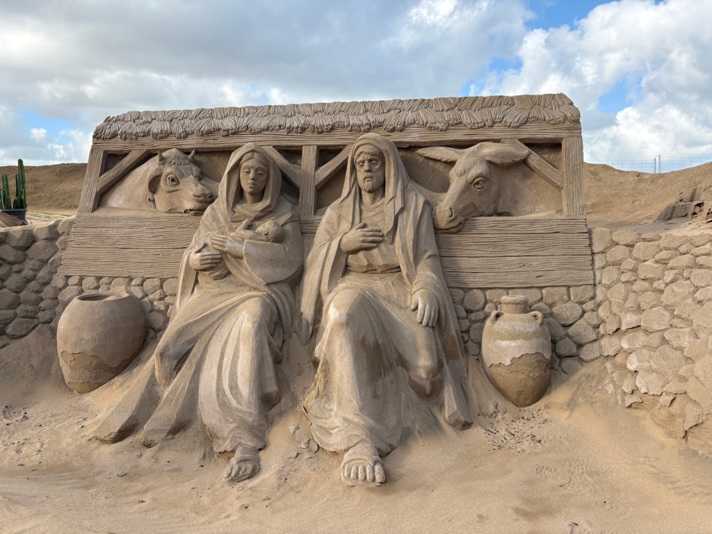 There was an exhibition of sand sculptures which were amazing. You have to understand that we are catching the tail end of their Christmas celebrations here and the Fia de Reyes (the epiphany) so the sculptures had a sort of nativity overtone, but they were very impressive,