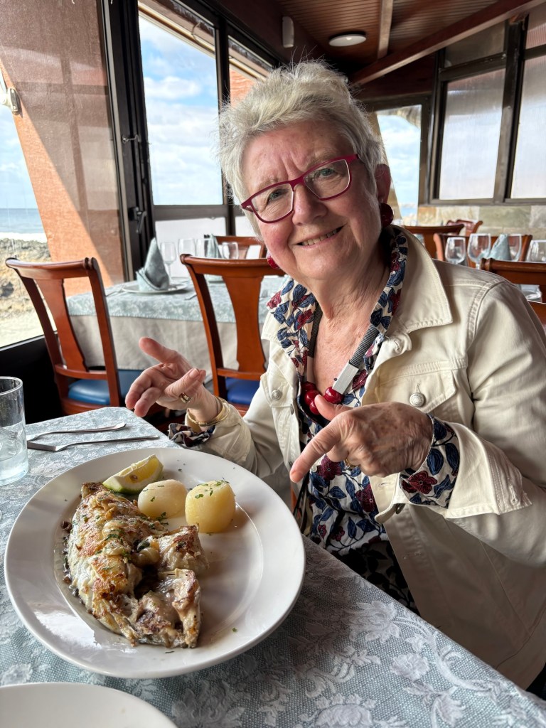 We eventually took our places for lunch and we had the best fish we have ever eaten – with a view to die for …….